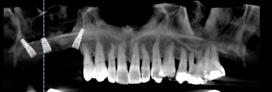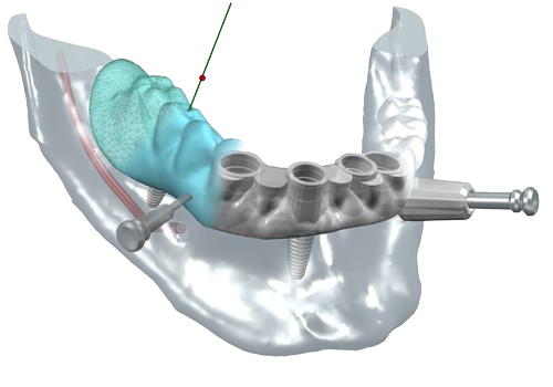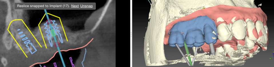 Cette vision 3D de l’implant dans l’os et en rapport avec les futures dents permet une reflexion « graftless », c’est a dire une implantologie nécessitant un minimum de greffe osseuse, donc plus rapide et moins mutilante.